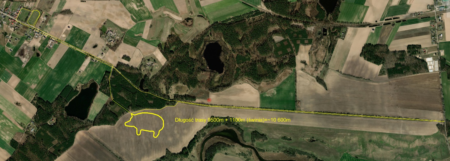 3. Tuż przed dotarciem do szosy w Płaszczycy zawodnicy robią nawrót i tą samą trasą kierują się w stronę stadionu. Po drodze wbiegają w pole kukurydzy z wyciętym fragmentem trasy w kształcie świni. Zwodnicy kończą bieg na stadionie OSiR w Przechlewie.